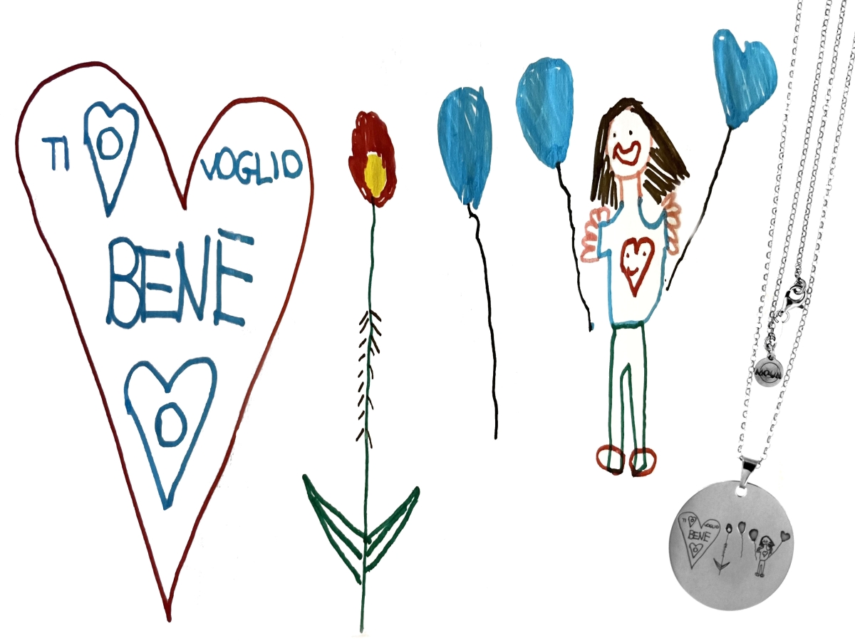 Inviaci il disegno di tuo figlio ed entro pochi giorni riceverai un bellissimo e unico gioiello in Argento 925 nichel free con la riproduzione del disegno da portare sempre con te.