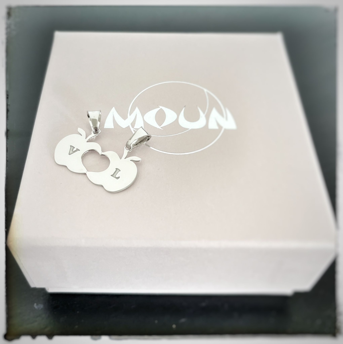 Pendente con mela che si divide in due ciondoli in argento 925.